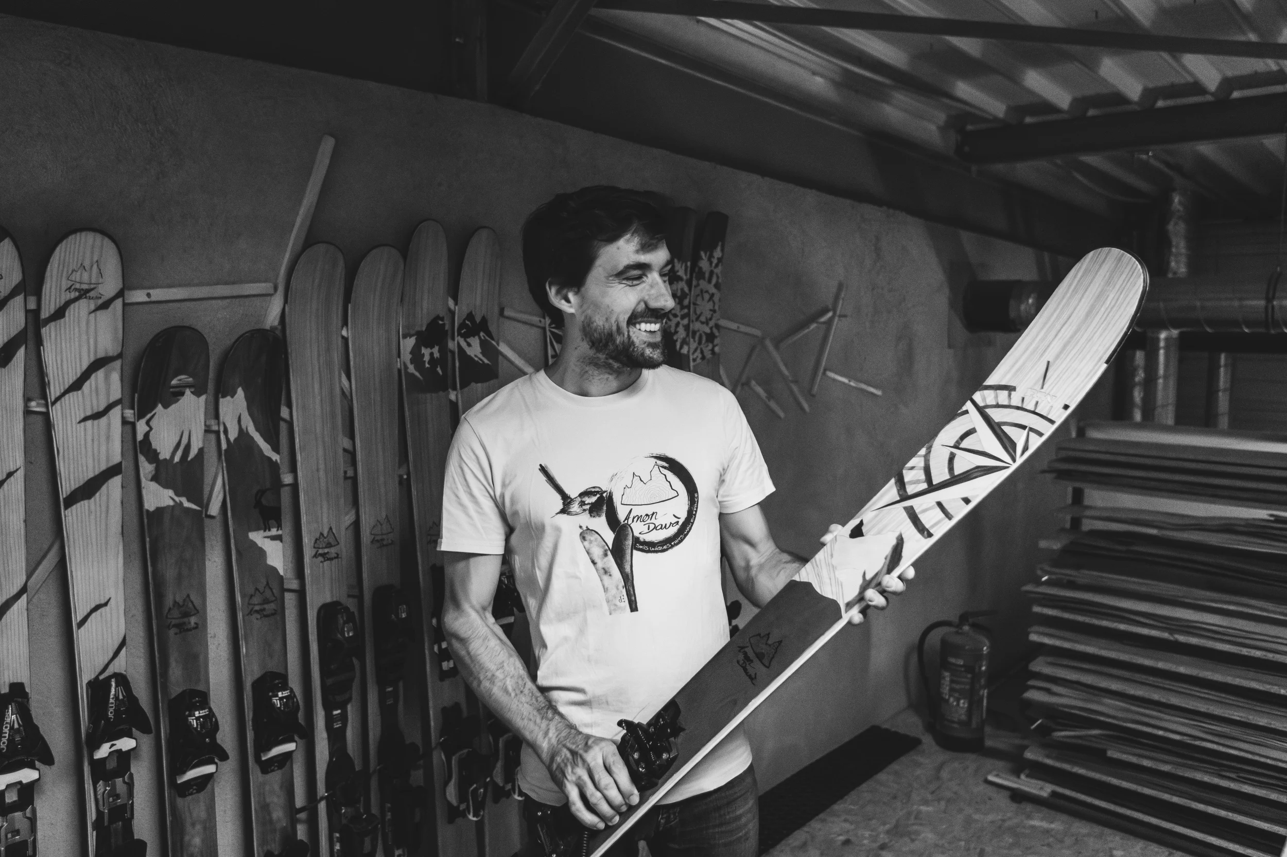 Ingénieur de formation, passionné de glisse depuis l’enfance, Damien découvre par hasard la fabrication artisanale des skis. Ce déclic le pousse à expérimenter, à apprendre, puis à construire ses premières paires de skis. Quelques années plus tard, il croise la route de Romain Maniglier, fondateur d’Amon Davà. L’idée d’une reprise s’impose peu à peu. Aujourd’hui, il poursuit l’aventure, entre savoir-faire hérité, innovations discrètes et engagement total dans un métier de passion.