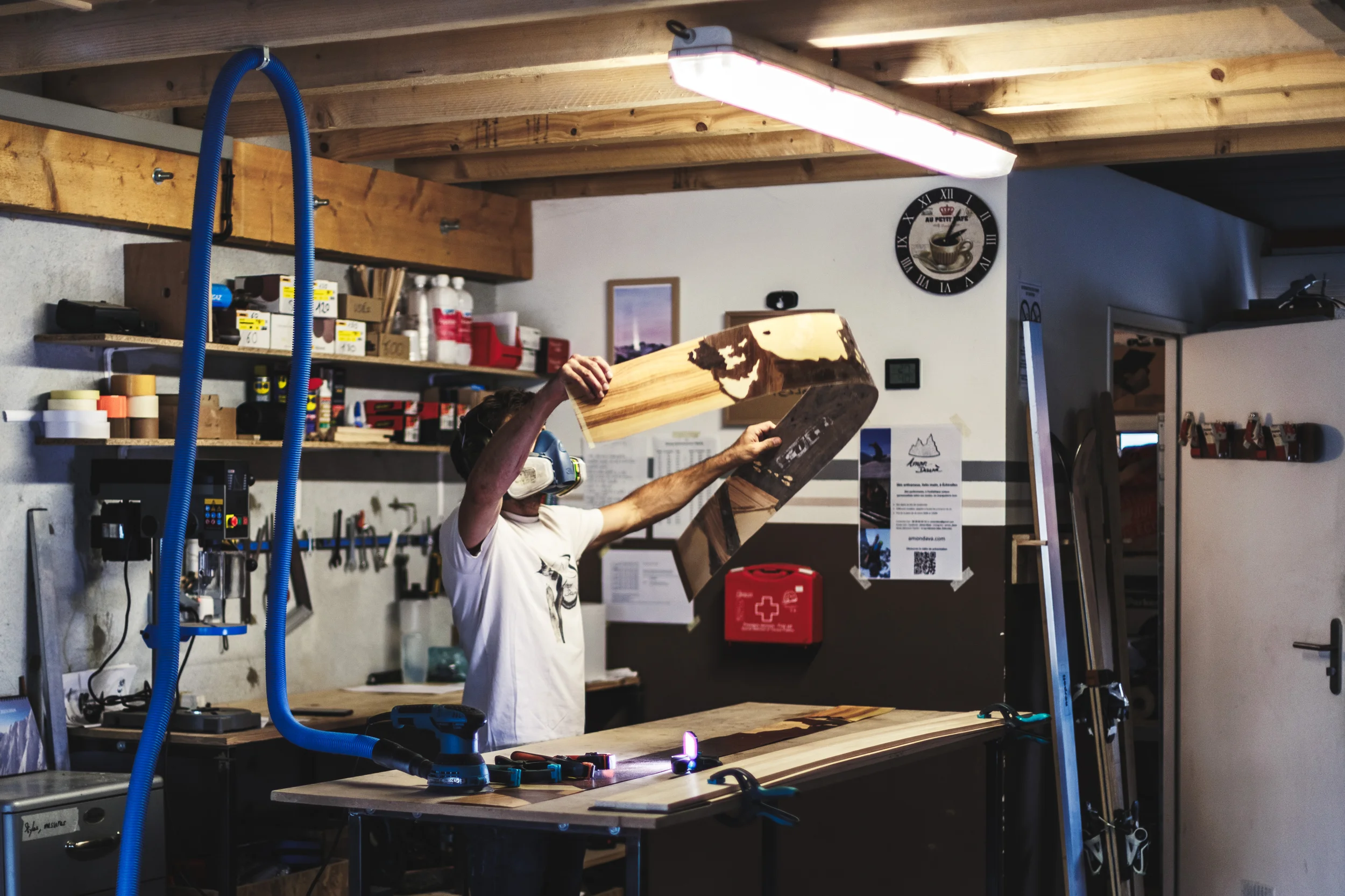 Damien : Un peu tout à la fois. Entrepreneur, parce que mon principal défi, c’est la communication et la gestion des commandes. Artisan, parce que je travaille la matière chaque jour, à la main, et que c’est ce que j’aime. Ingénieur, parce que ma formation me sert tous les jours : que ce soit pour calculer la flexion d’un ski, diagnostiquer une panne d’outillage ou comprendre les réactions d’une résine. Ce bagage technique me fait gagner beaucoup de temps.