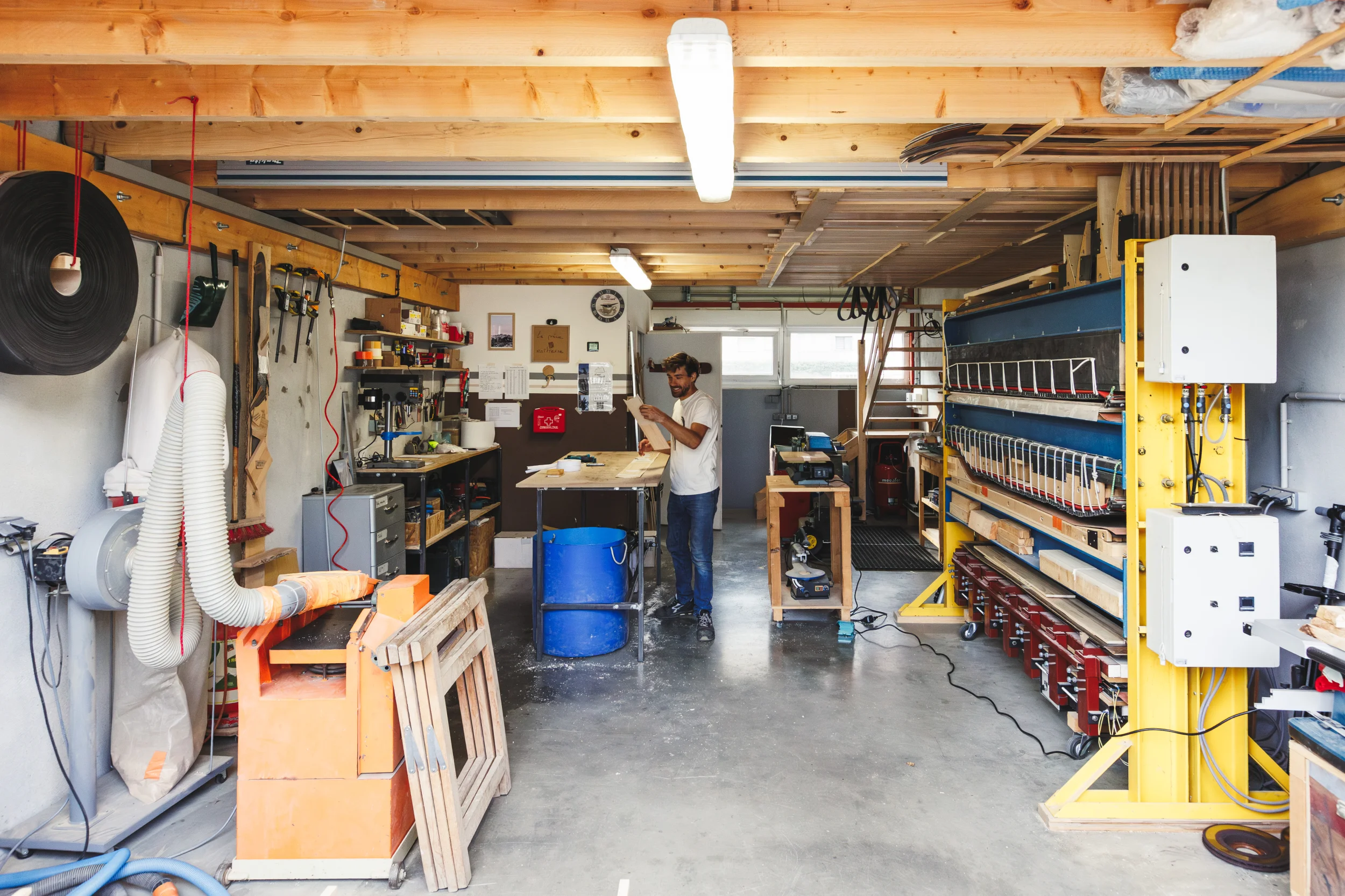 Damien : Je skie depuis tout petit. Au début, c’était juste un plaisir de vacances, puis c’est devenu une vraie passion. À l’école d’ingénieur, j’ai découvert un club de fabrication de skis, un peu par hasard. Je ne savais même pas qu’on pouvait en fabriquer soi-même. J’ai beaucoup appris sur les matériaux, les outils, les procédés. Après mes études, je n’avais plus accès à la presse de l’école, alors avec mon frère on en a construit une, dans le garage de nos parents. On faisait des skis très simples, juste pour comprendre, pour tester. J’en ai sorti quatre ou cinq paires, pas incroyables à skier, mais ça m’a donné les bases.
