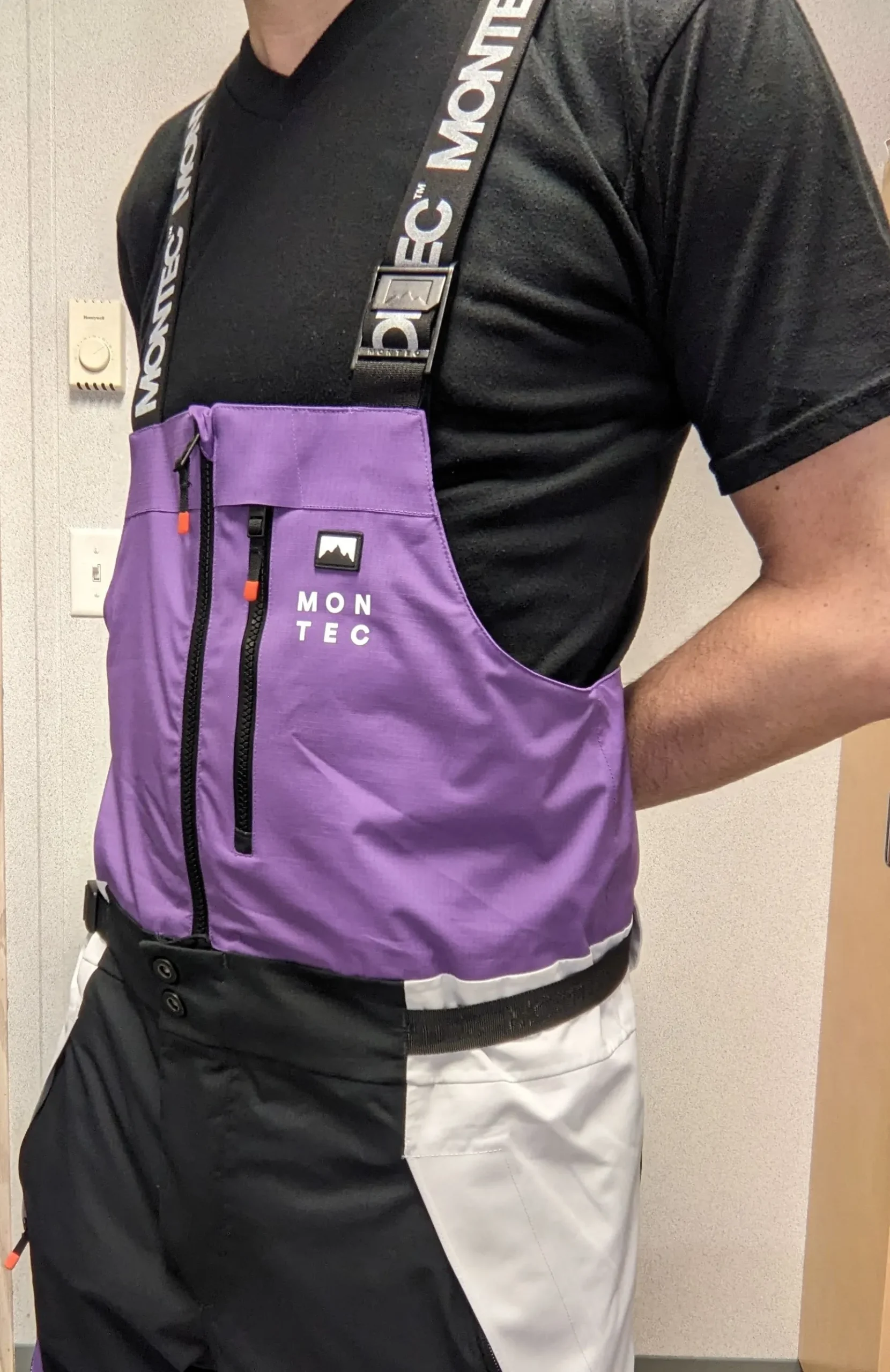 On parle bien ici d’une salopette de ski (ou snowboard d’ailleurs). Malgré le côté potentiellement ringard de la salopette de ski, elle présente bien des avantages par rapport au pantalon de ski. Cette salopette donc, est venue tout droit de Suède et de la marque Montec. Montec qui est gérée par Ridestore, qui possède également Dope Snow, une marque un peu plus connue que Montec, mais à la qualité et à la philosophie grandement équivalentes.