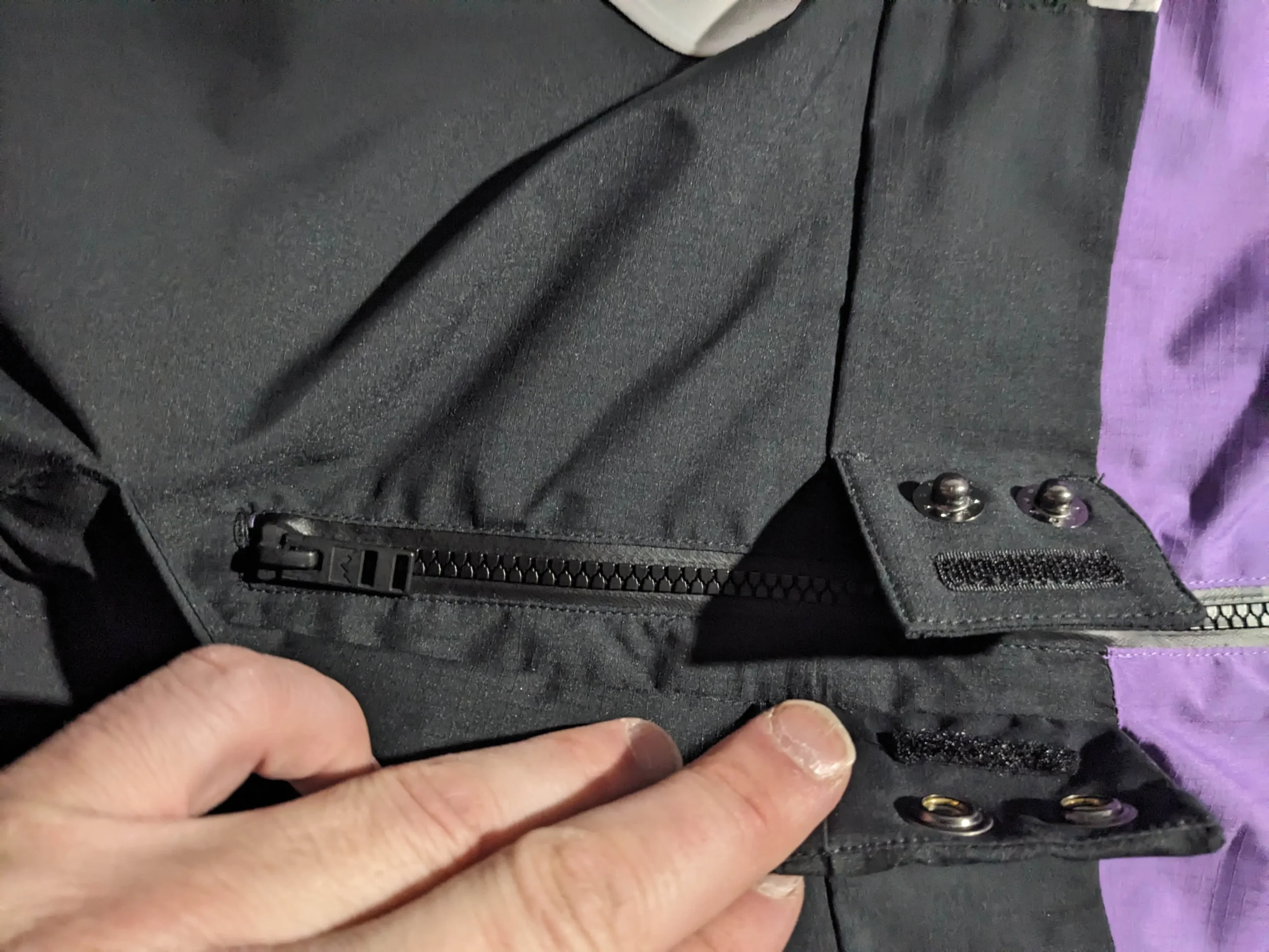 J’ai identifié au moins 2 types de fermetures éclair sur cette salopette de ski. Des fermetures étanches et des fermetures standards. En plus de cela, certains curseurs sont plus larges et plus simples à saisir. D’autres sont plus fins et plus petits.